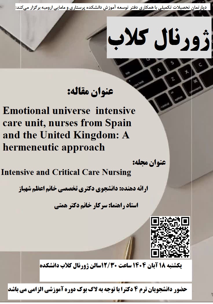 دپارتمان تحصیلات تکمیلی با همکاری دفتر توسعه آموزش دانشکده پرستاری و مامایی نشست ژورنال کلاب با مشخصات زیر برگزار می‌کند: